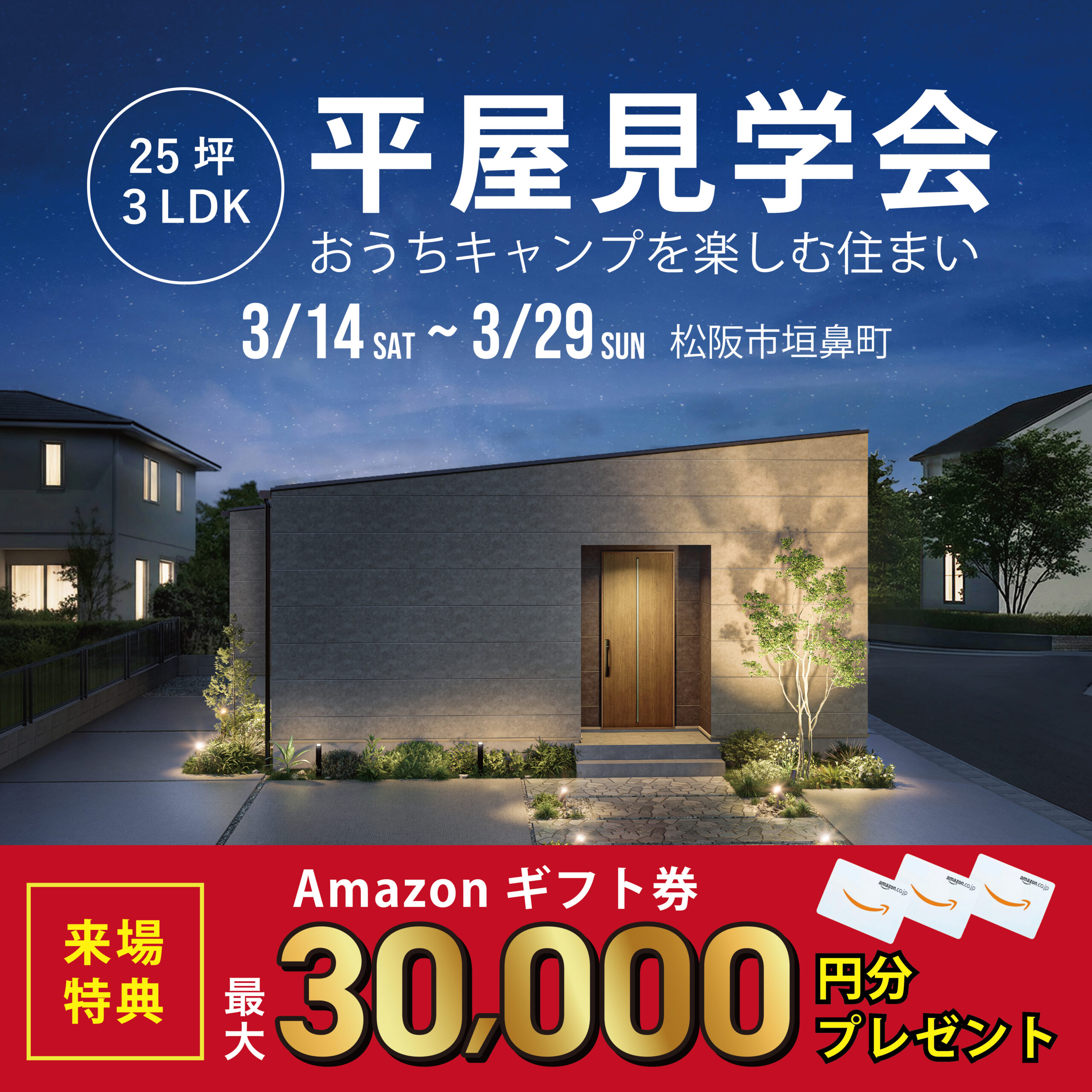 【特典付き】25坪の平屋 完成見学会