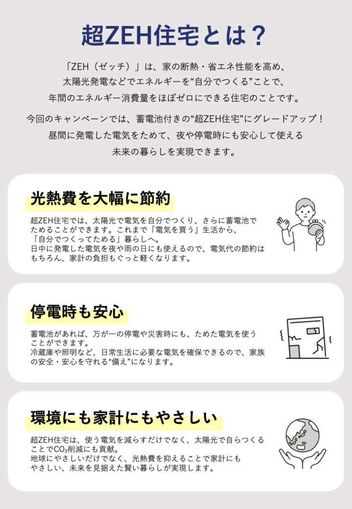 光熱費を抑えながら、災害時にも安心の次世代ZEH住宅をお得に叶えられるチャンスです!